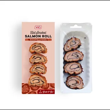 Hot Smoked Salmon Roll with Dried Tomatoes